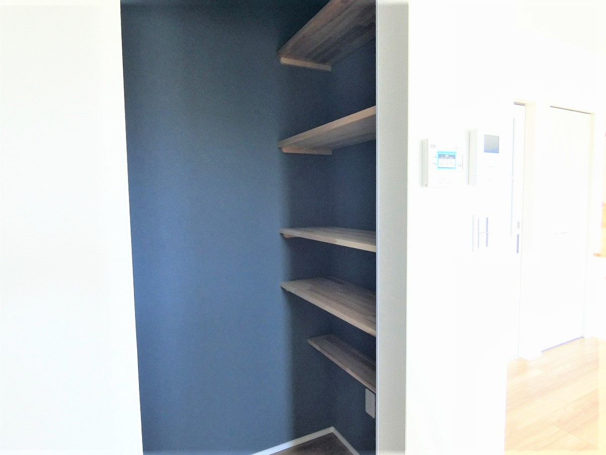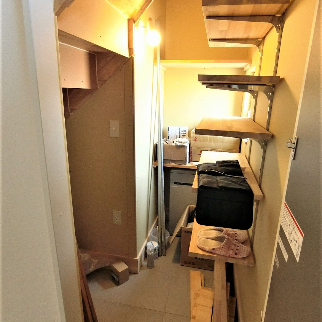 - パントリー:片面しか映っていませんが対面にも棚があり、収納力高めです。