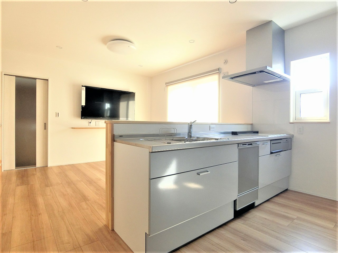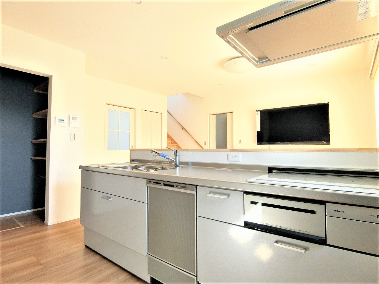 - キッチン:吊戸棚がない分、開放的です。