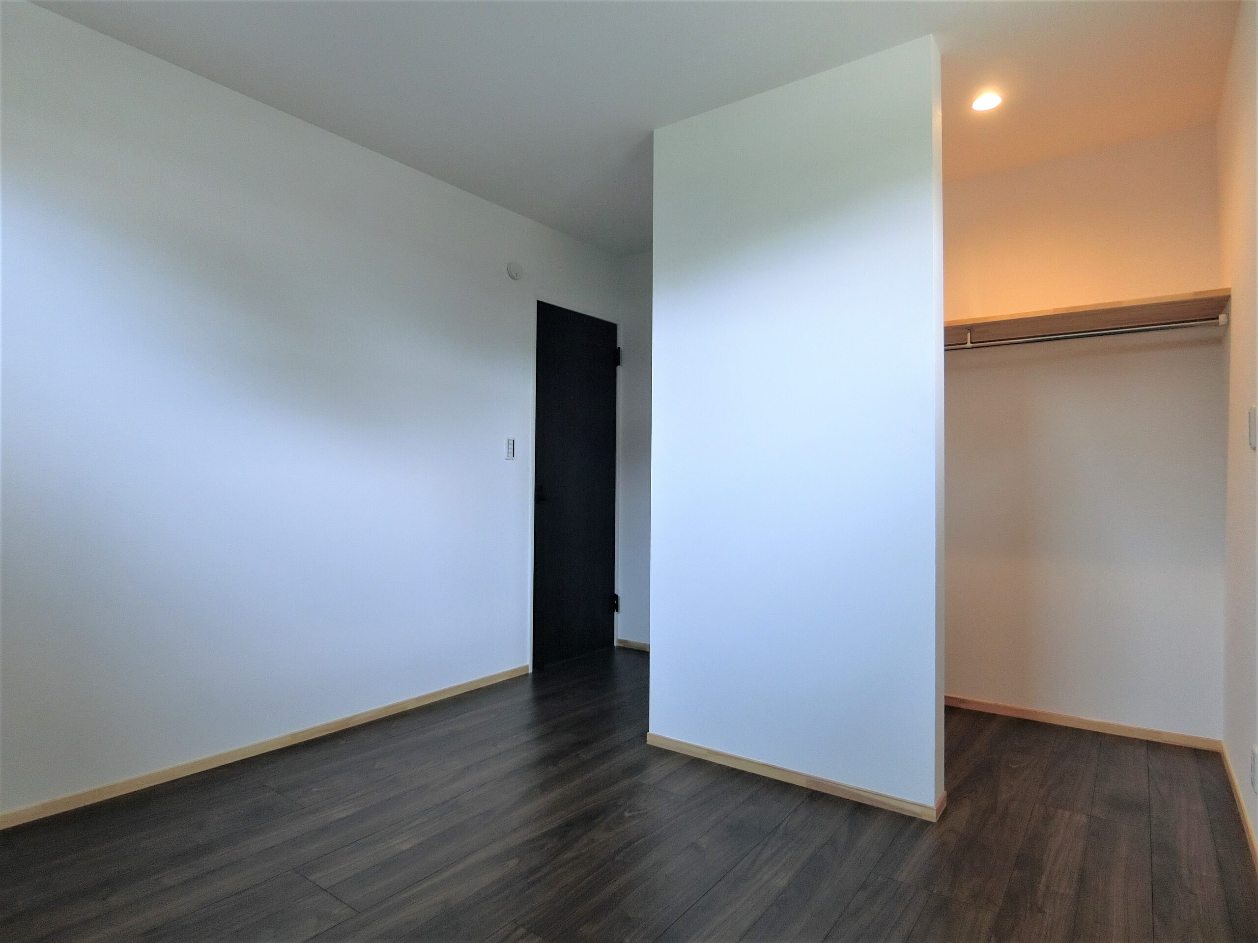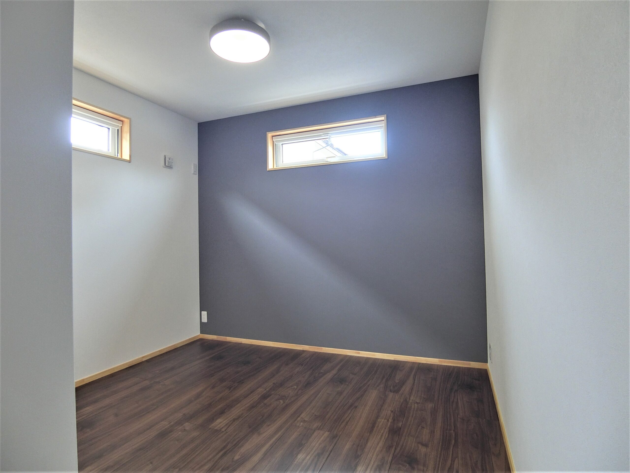 | ③主寝室 | 寝るだけのイメージなので床やアクセントクロスもダーク系でまとめて落ち着いた空間になってます。 |