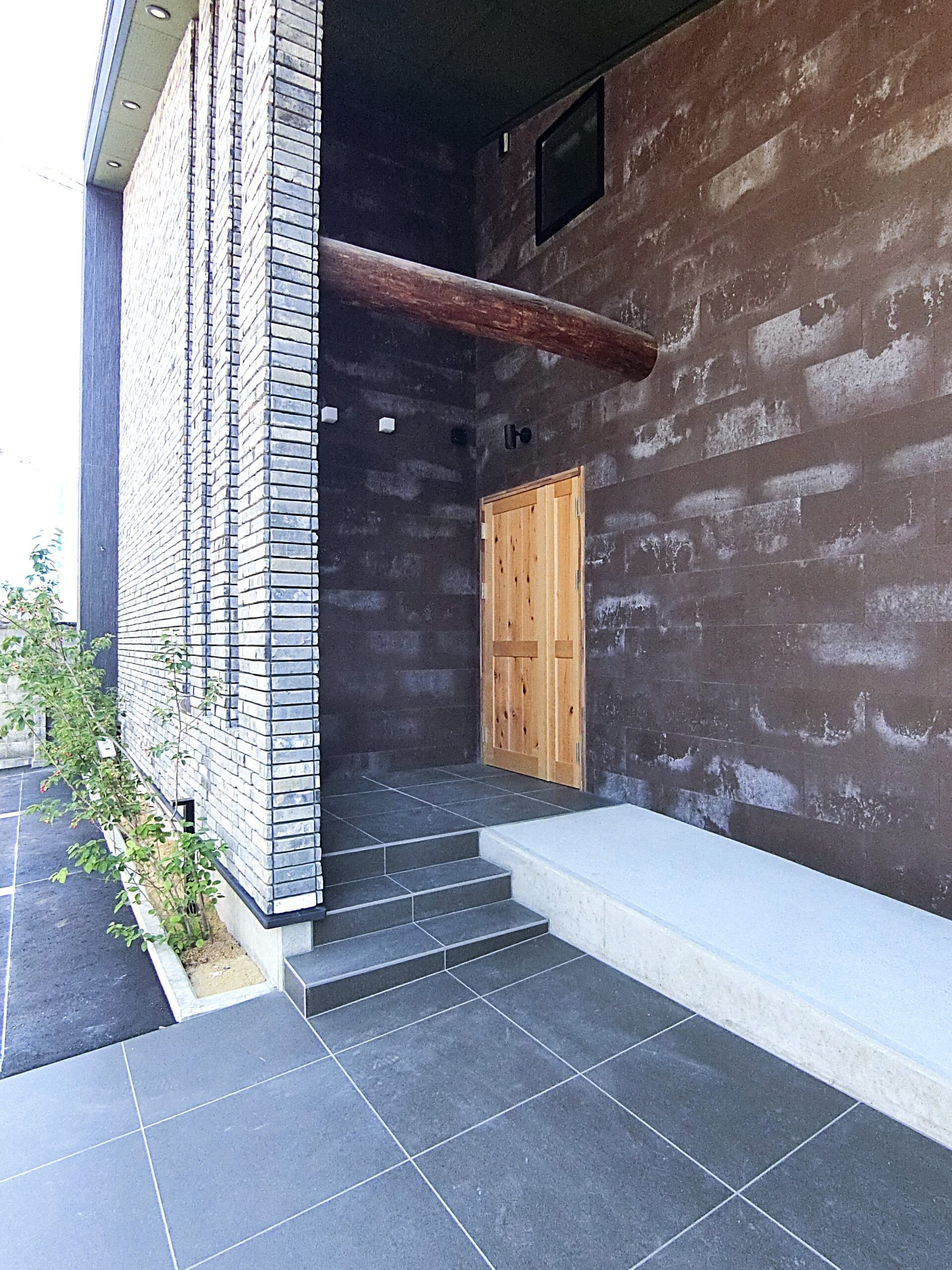- エントランス_外壁の上海レンガが味を出しています。ドアも造作一点物です。