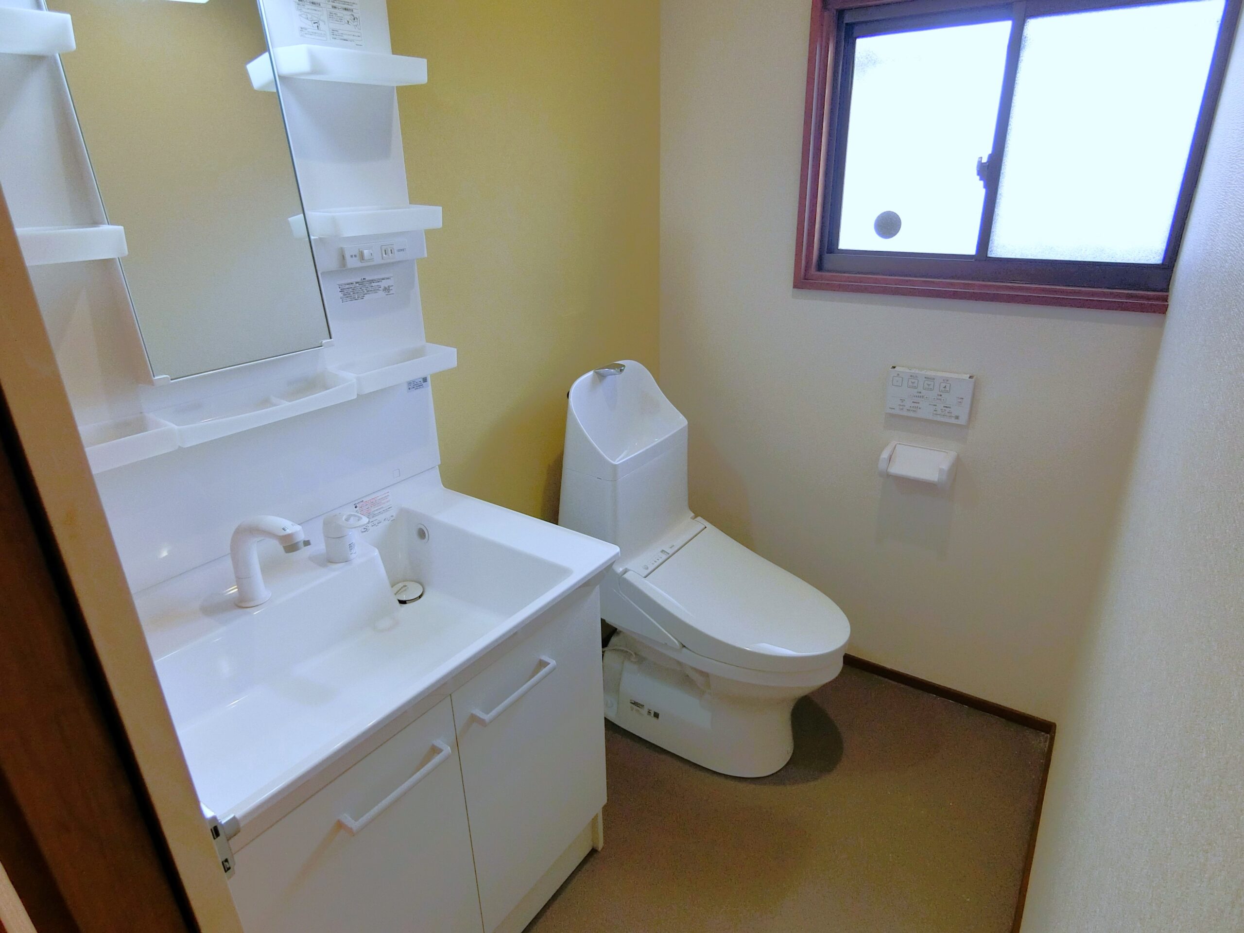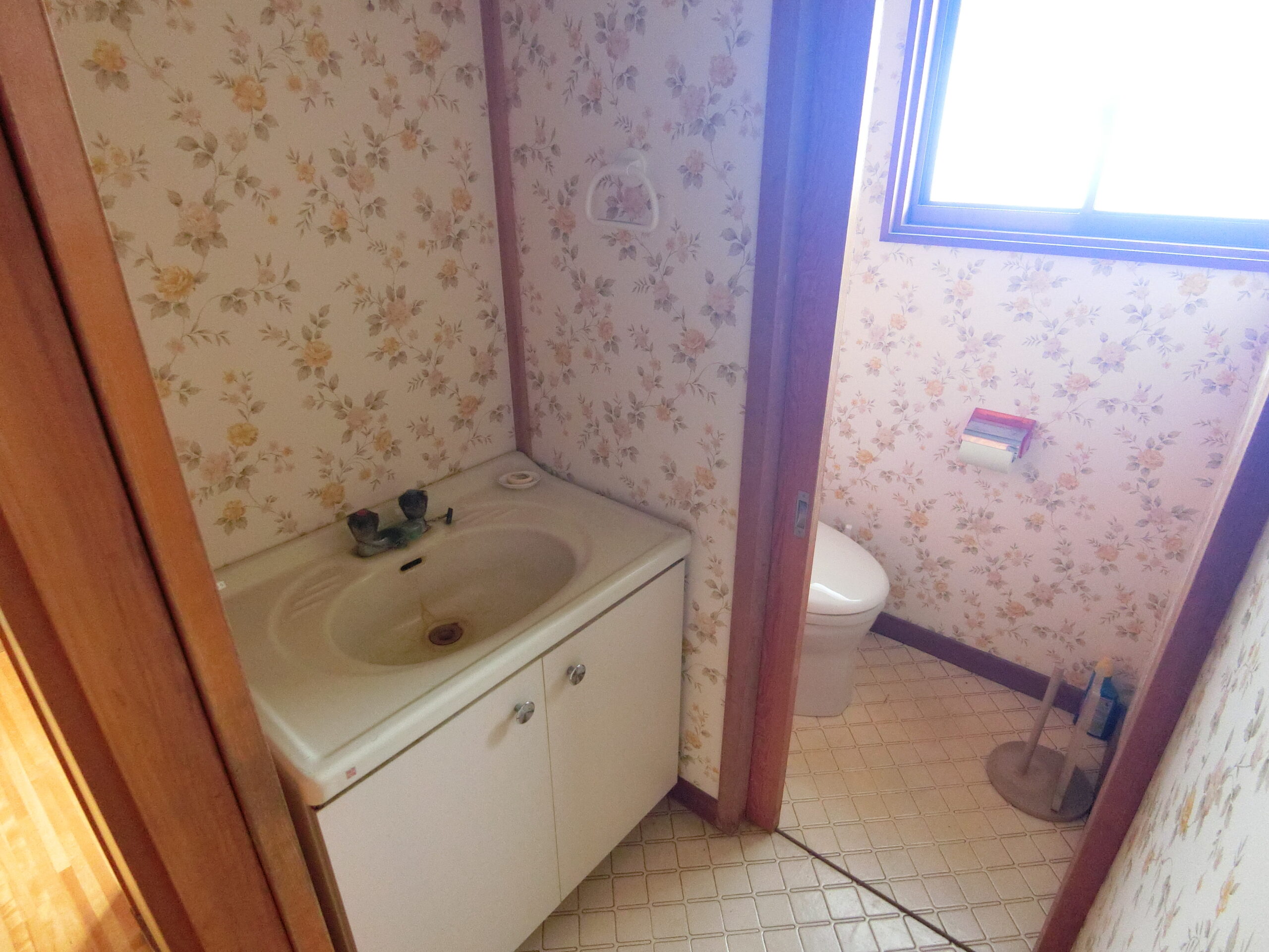 - AFTER洗面トイレ_住設を入替、床とクロスを張り替え、間仕切りを解体したら明るく清潔感のある空間になりました。