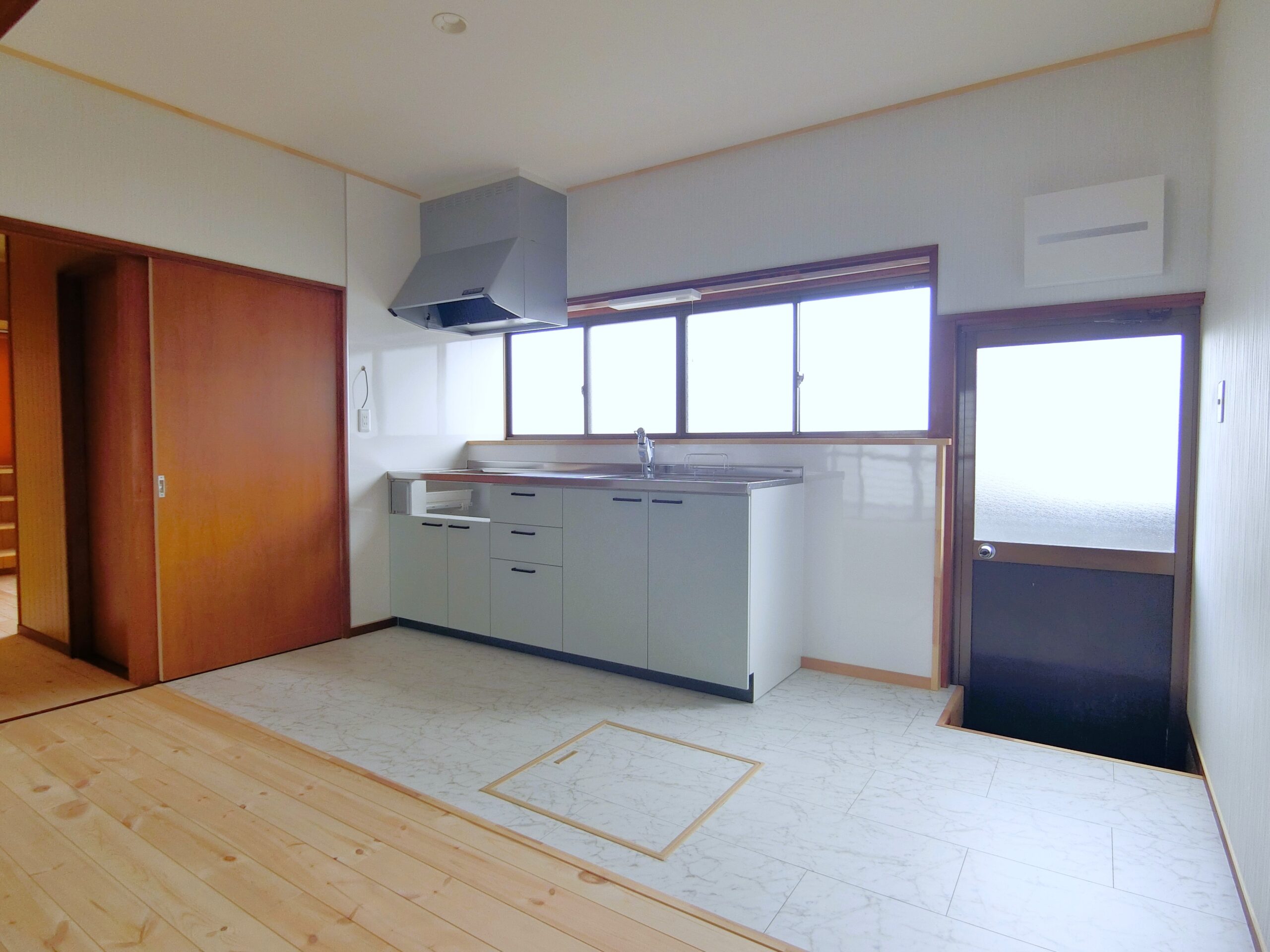- AFTERキッチン_キッチンとリビングを仕切る壁を解体してLDKに間取り変更もしました。